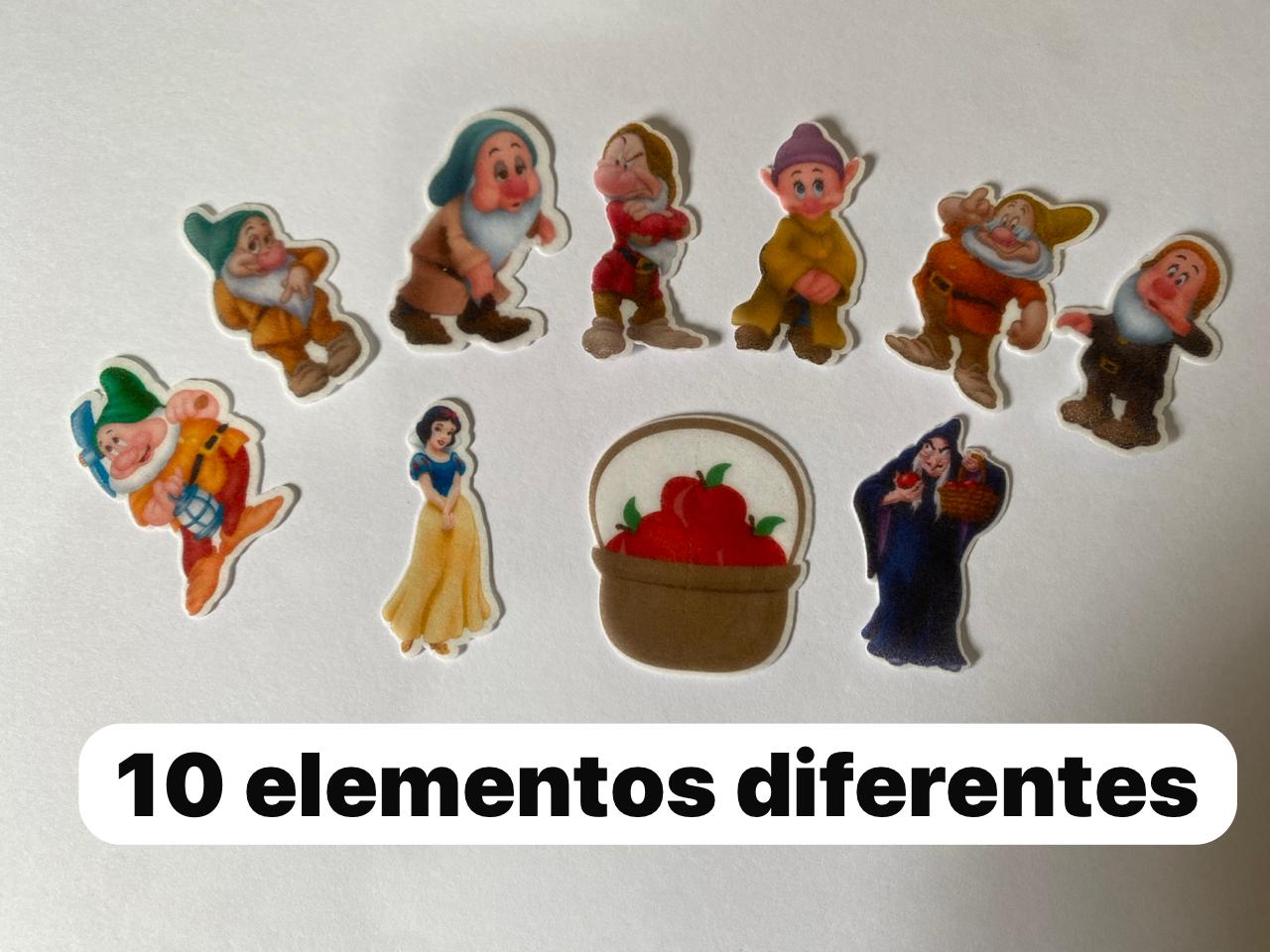 Folha com 24 unidades de aplique em papel arroz para enfeitar confeitos e doces com tema Branca de Neve. Cada peça possui 4 cm, ideal para decorar bolos, cupcakes e outras guloseimas da sua festa ou evento com facilidade e praticidade.