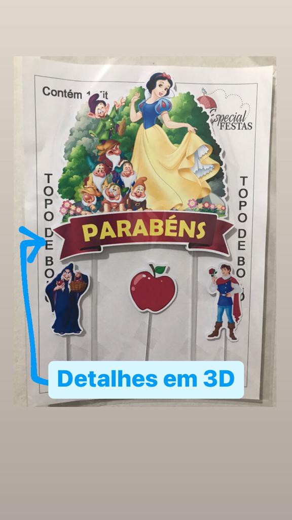 BRANCA DE NEVE TOPO DE BOLO (DETALHES EM 3D)