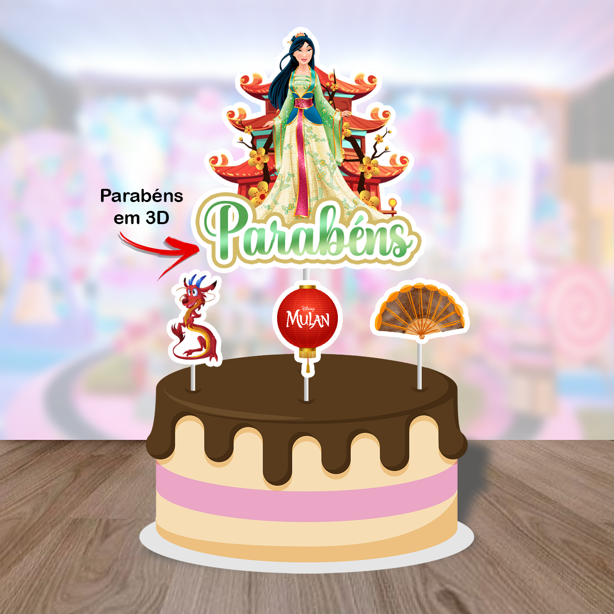 PRINCESA MULAN TOPO BOLO (DETALHE 3D)
